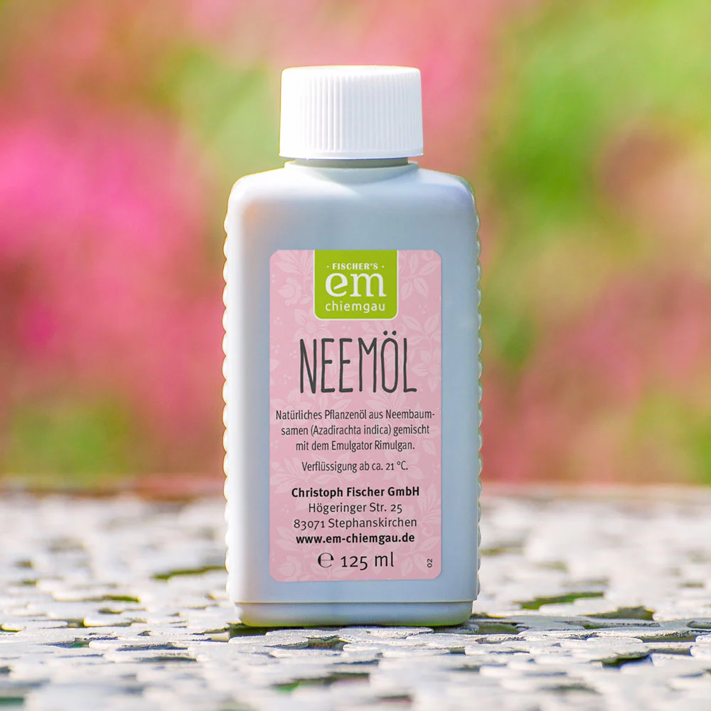 Neemöl möglichst bei einer Schönwetterperiode verwenden, damit es nicht abgewaschen wird und wirken kann. Vor der Anwendung leicht anwärmen (ca. 25° C) bis es flüssig ist. Neemöl-Behandlungen bitte frühmorgens oder am Abend vornehmen. Die Lösung innerhalb 24 Stunden verbrauchen.